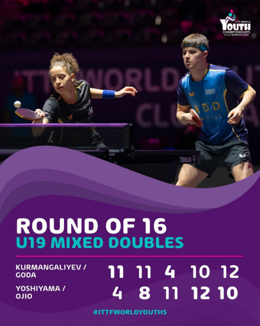 Молодёжный чемпионат мира, который проходит в городе Клуж-Напока (Румыния) набрал обороты. Сегодня интернациональный дуэт Алан Курмангалиев/Хана Года (Казахстан/Египет) одержал две победы и вышел в четвертьфинал.