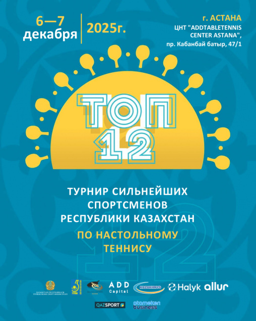 6 и 7 декабря в Астане пройдут матчи традиционного турнира сильнейших спортсменов Республики Казахстан «ТОП 12», на котором выступят 12 мужчин и 12 женщин, имеющих наилучшие показатели в национальном рейтинге.