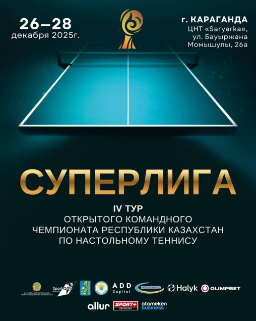 В карагандинском Центре настольного тенниса «Saryarka» с 26 по 28 декабря состоятся матчи заключительного IV тура Открытого командного чемпионата Казахстана в Суперлиге.