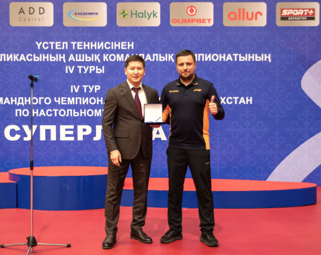 Почётный знак Тимуру Ходжаеву вручил генеральный секретарь Федерации настольного тенниса Казахстана Данил Пак.