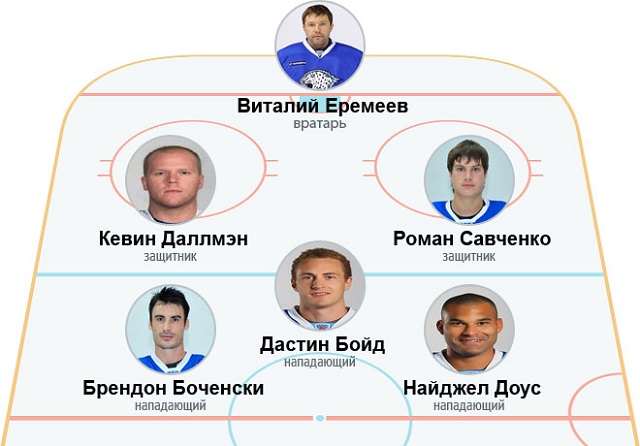 Астана видела немало действительно классных центрфорвардов. Иржи Новотны запомнился бойцовскими качествами и эталонной игрой на точке вбрасывания. Йозеф Штумпел искусно орудовал своей клюшкой. Николай Антропов со своими умопомрачительными габаритами стал грозой любого пятака. Но всё-таки места в нашей символической пятёрке достоин канадец Дастин Бойд, собравший в себе все козыри предшественников. Будучи типичным североамериканским центром с запредельной работоспособностью и щепетильным отношением к «точке», Бойд ещё и приличный диспетчер. Ни одно звено не может быть признано лучшим в лиге, если в его центре нет первоклассного распасовщика. За пять сезонов канадец набрал 98 результативных баллов и совсем скоро станет третьим игроком, после Даллмэна и Боченски, который разменяет сотню очков в форме «Барыса».