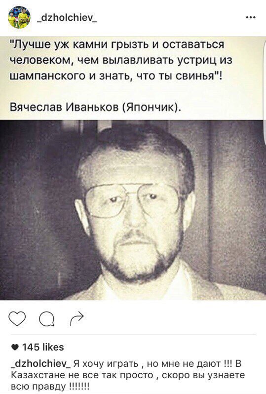 Бауржан Джолчиев оставил странную запись под цитатой Япончика