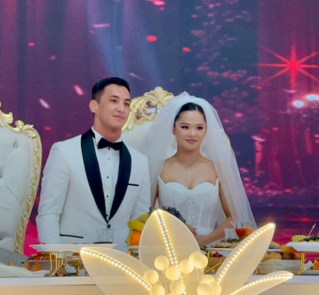 Гости также стали свидетелями их истории любви — на большом экране показали love story, рассказывающую, как Самат и Жибек познакомились несколько лет назад в спортивном зале, где началась их романтическая история.