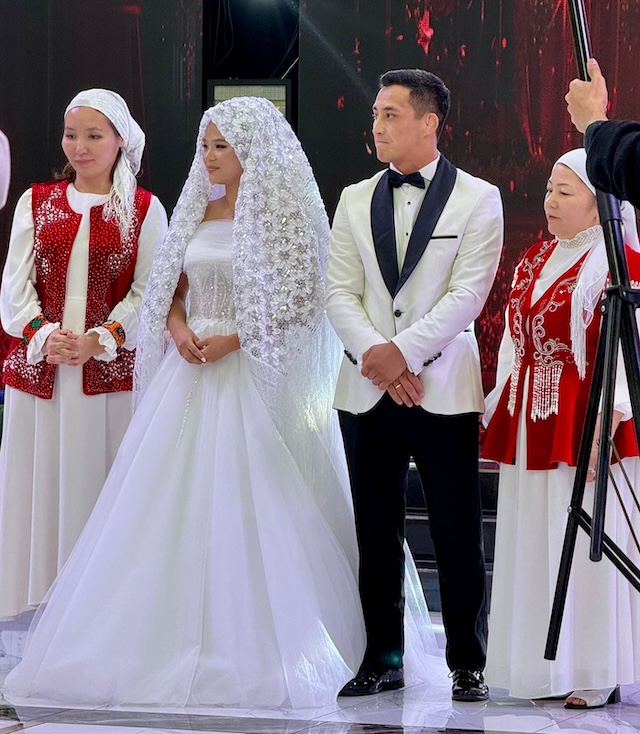 Праздничный вечер сопровождался концертной программой, ярким шоу и танцами. Для молодожёнов звучали трогательные песни в исполнении близких и популярных казахстанских артистов, в том числе этно-группы "Алатау Серілері", исполнившей патриотические композиции.