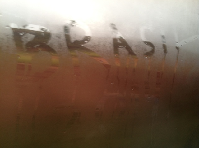 Надпись, сделанная на окне нашего автобуса с текущими каплями, словно отражает грустные думы о команде Сколари.