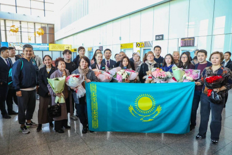 Министр туризма и спорта Ербол Мырзабосынов встретил в аэропорту Астаны спортсменок женской сборной по шахматам, которые завоевали серебряную медаль на 45-й Всемирной шахматной олимпиаде, а также спортсменов мужской сборной, принимавших участие в этом престижном соревновании.