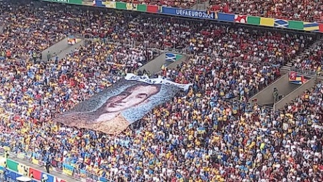 Не прошло и 10 минут матча Украина - Бельгия на Евро-2024, как все внимание болельщиков на стадионе в Штутгарте перенеслось с зелёного поля на сектор украинских фанатов. На жовто-блакитном фоне появился огромный баннер с надписью на английском языке PEACE HAS A PRICE.