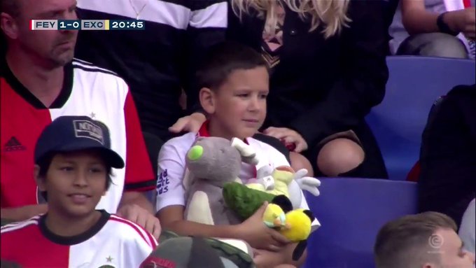 At the @excelsiorrdam vs @Feyenoord game, fans shower children from the @erasmusmcintl hospital with stuffed toys.