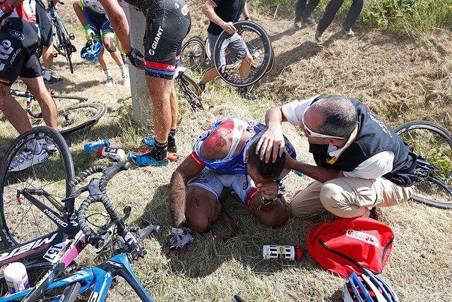 Третий этап самой престижной веломногодневки мира «Тур де Франс» войдет в историю как один из самых скандальных. День был омрачен массовым завалом, случившимся перед горным участком. Одновременно упали около 20 велосипедистов, в том числе лидировавший на тот момент в общем зачете швейцарец Фабиан Канчеллара. В результате организаторам впервые за долгое время пришлось приостановить гонку.