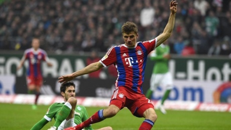 • "Бавария" уверенно лидирует в бундеслиге, опережая идущий вторым "Вольфсбург" на 11 очков. Блестящий гол Томаса Мюллера в первом тайме положил начало разгрому "Вердера" на его поле – 4:0.