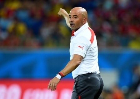Главный тренер сборной Чили Хорхе Сампаоли после победы в матче чемпионата мира-2014 над командой Испании (2:0) поздравил своих подопечных с выходом в плей-офф мирового первенства.