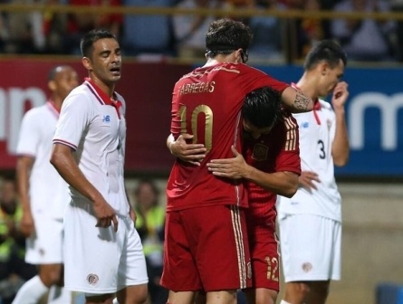 В товарищеском матче между двумя прошлогодними участниками ЧМ сильнее оказались испанцы, которые одержали волевую победу над Коста-Рикой. Латиноамериканцы первыми забили в этой встрече, но Пако Алькасера уравнял счет спустя всего лишь две минуты. А на исходе первого получаса игры Сеск Фабрегас забил и второй гол, который, как показали события (а точнее, их отсутствие) второго тайма, стал решающим.