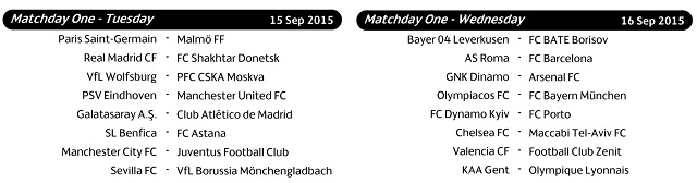 Стал известен календарь матчей группового этапа Лиги чемпионов 2015/2016.