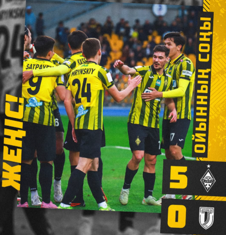 ФК "Кайрат" с разгромным счётом победил "Жетысу" в рамках 24 тура премьер-лиги.