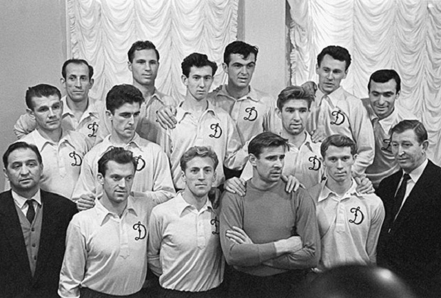 Слева направо в первом ряду: капитан команды Евгений Фокин, Владимир Кесарев, Виктор Царев, Лев Яшин, Анатолий Коршунов, старший тренер команды Михаил Якушин. Во втором ряду: Константин Крижевский, Борис Кузнецов, Валерий Короленков, Дмитрий Шаповалов, Игорь Численко, Генрих Федосов, Александр Соколов, Валерий Урин и Аликпер Мамедов.