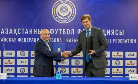Президент Казахстанской федерации футбола Адлет Барменкулов и Председатель Совета директоров АО «Фридом Финанс» Тимур Турлов подписали меморандум о сотрудничестве.