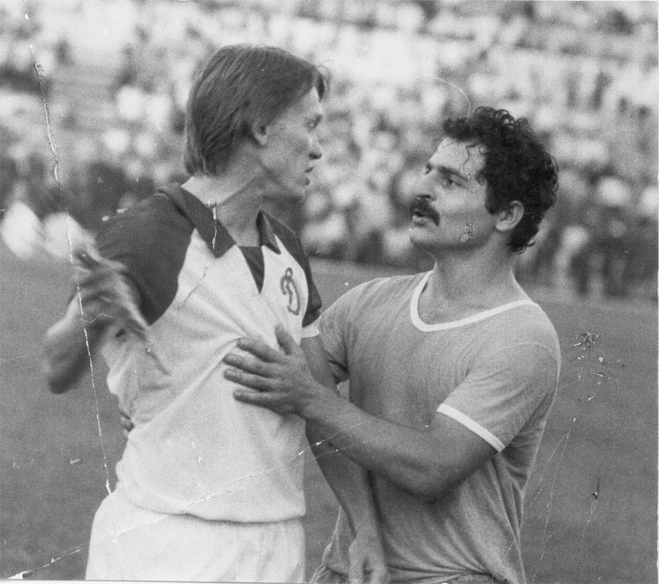 На поле мы вышли и прекрасной форме, но я и подумать не мог, что мы уже на третьей минуте закатим тот мяч. Когда игра началась, мы знали, что у них из-за травмы отсутствует великий игрок, настоящий профессор футбола Александр Чивадзе. Я его называл грузинским Беккенбауэром. Просто удовольствие получал, когда смотрел, как он играет в задней линии, как руководит другими. И вот мы решили по полной воспользоваться отсутствием этого великого человека. Хотя другие игроки у динамовцев тоже были отличные – и Шенгелия, и Какилашвили, игравший когда-то со мной в молодежной сборной, и Володя Гуцаев, который тогда, правда, уже был не тот Гуцаев – все-таки он возрастной игрок. А у нас, зато был товарищ Шадиев, который "вырезал" не только таких, как Гуцаев, но и других не менее сильных. И Джуманов Боря, и Саша Куклев – все бойцы с большой буквы. Джуманов, вообще говоря, был цепкий защитник, хитрый. Правда, его постоянно преследовали травмы. За 15 лет он провел 150–170 матчей.