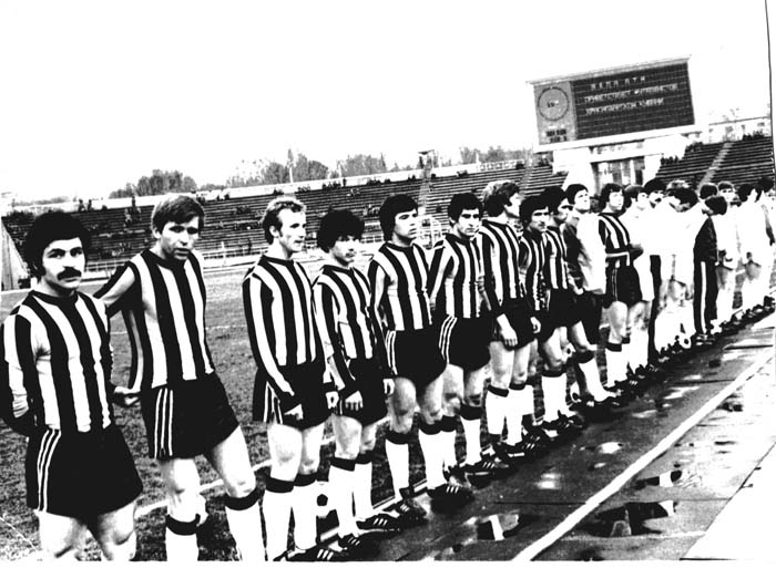 У Убыкина от моих ударов на тренировках перчатки лопались – не вру. Дело в том, что я всегда приходил на тренировку чуть раньше других и перво-наперво качал мячи. И всегда перекачивал так, что они аж звенели! Сашка потом гонялся с криком: "Грек! Лрять мячи перекачал! Поймаю – убью!". Перчатки-то три рубля стоили: три игры – они и кончались. И Куралбек в таких стоял. А когда еще и руки потеют – вообще ужас! У нас в команде тогда была форма одного из греческих клубов – такая полосатая, желто-черная – один грек привез в Чимкент, а оттуда ее отдали нам в "Кайрат".