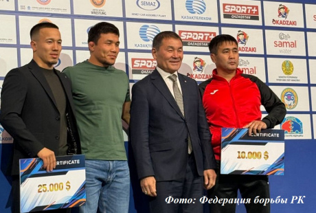 А чемпиону мира по греко-римской борьбе 20245 года Айдосу Султангали от Федерации была вручена денежная премия в размере 25 тысяч долларов США. Его личный тренер был удостоен награды в 10 тысяч долларов.