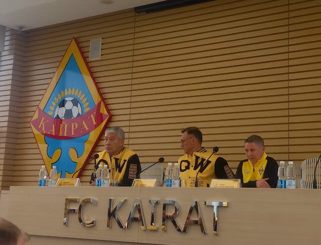 Затем состоялась пресс-конференция с участием: Председателя наблюдательного совета ФК «Кайрат» — Кайрата Боранбаева, главного тренера основной команды — Рафаэля Уразбахтина, главного тренера женской команды — Марии Яловой.