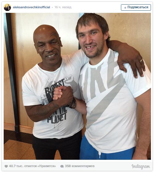 Фотография получилась очень даже позитивной: улыбающиеся Тайсон и Овечкин обнимаются, будто знакомы тысячу лет. И ведь спортсменам наверняка нашлось, о чем поговорить, ведь они не понаслышке знают, что такое быть настоящей звездой спорта.