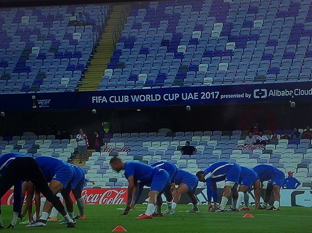 В Эмиратах зимойсолнце садится рано и матч начался в 18.00, когда наступило темное время суток. Днем температура была чуть больше 25 градусов. А к вечеру понизилась до 20-22 и сразу заставила вспомнить всем известный с советских времён штамп. Сегодня в Аль Айне - настоящая футбольная погода. Зрителей собралось мало, хотя фанаты японской команды заполнили несколько секторов и своей активной шумовой поддержкой с самого старта создали праздничную атмосферу. Темп игры был невысокий и противостояние чемпионов Азии и Африки больше походило на товарищеский матч. Посвежее и энергичнее выглядели японцы и именно они открыли счёт Дальним ударом Антонио Маурицио застал врасплох вратаря номинальных хозяев. Буквально через несколько минут Хаддад мог сравнять счёт, но японцев выручил вратарь и видно, наслаждаясь этим моментом, "запустил" курьезный гол от того же Хаддада со штрафного удара, прозевав отскочивший от поля мяч! Операторы показывали на экране правого защитника Махири, но если он и задел мяч, то лишь кончиками волос. Противники нередко использовали коллективный отбор, но не очень жёстко и агрессивно, что позволяло обеим дружинам свободно комбинировать. Японцы в этом плане выглядели быстрее и в одной взрывной атаке им удалость забить второй мяч.