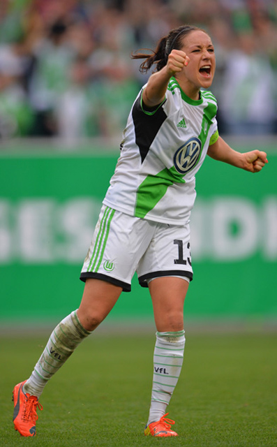 5-летняя Надин Ангерер защищает цвета сборной Германии с 1996 года и пока не дает повода усомниться в своем высоком уровне – 135 матчей в составе бундестим, семь чемпионских титулов на первенствах Европы и мира и "Золотой мяч" ФИФА 2013 года. При этом Надин по-европейски открыта к отношениям как с мужчинами, так и с женщинами.