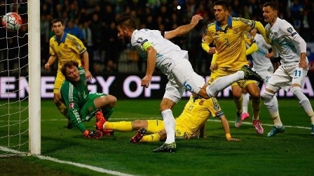 Сборная Украины потрепала нервы своим поклонникам, но все же прошла в финальную стадию Евро-2016. Хозяева ставили на быстрый гол, и он им удался уже на 11-й минуте. После подачи с правого фланга Пятов справился с ударом головой с близкого расстояния, защитник заблокировал добивание Новаковича с метра, но мяч отскочил на голову Цесару, который с метра затолкал его в сетку.