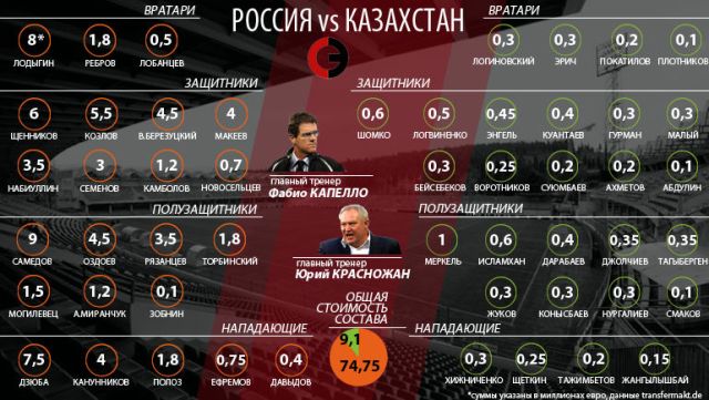 Теги: Евро-2016, сборная Казахстана, сборная России, Фабио Капелло, Юрий Красножан, трансферная стоимость