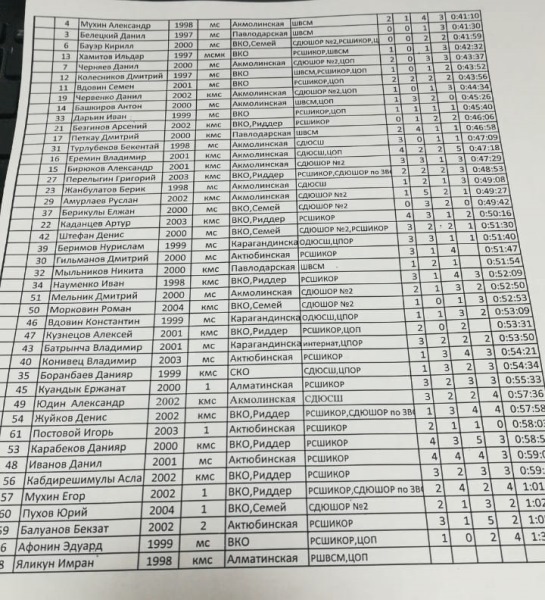 Среди мужчин лучший результат показал Владислав Киреев (0+1+2+2) с результатом 38 минут 37 секунд. На втором месте уроженец Павлодарской области Тимур Куц (1+2+1+2) 39 минут и 8 секунд. Бронза у Тимура Хамитгатина (0+0+2+2) 39:59.