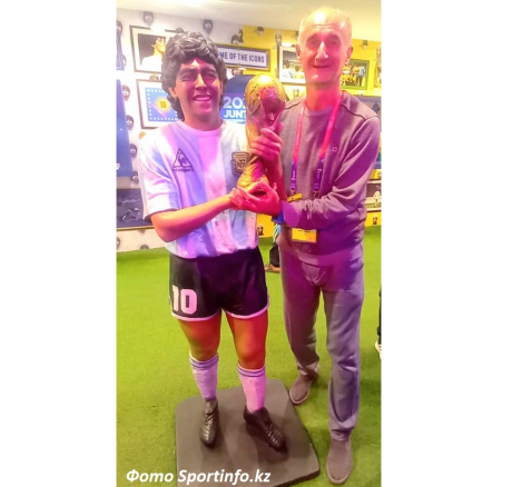 На фото главред Sportinfo.kz Гений Тулегенов с восковым Марадоной.