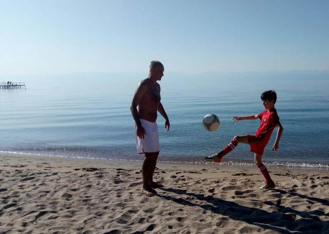 Для нашей семьи Иссык-Куль сразу ассоциируется с футболом. И на иссык-кульском песке мы тренируемся, словно бразильцы на пляже Копакабана. Такое сравнение приводит дедушка, и мы в охотку выполняем различные упражнения с мячом и без мяча и , конечно же, играем в футбол. Дедушка мечтает, чтобы на берегу озера была создана спортивная база, которая стала бы хорошим фундаментом для подготовки и мастеров, и детей. Это все в мечтах, а пока на пляже мы играем в дыр-дыр.