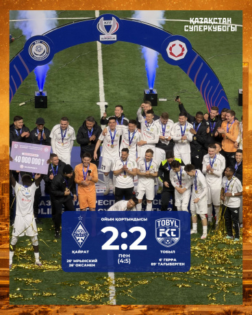Бүгін, Астана Аренада алматылық «Қайрат» пен қостанайлық «Тобыл» Olimpbet Қазақстан Суперкубогі аясында финалдық кездесу өткізді.  Ойын өте тартысты өтті.