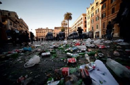 Хулиганы повредили фонтан перед знаменитой Испанской лестницей, вынудили местных предпринимателей от греха подальше закрыть свои магазины и спровоцировали столкновения с полицией, в результате которых были арестованы 23 фаната.
