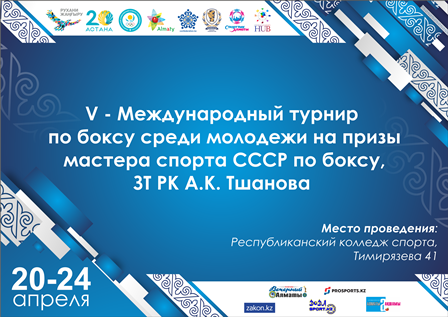 Соревнование проводится в легкоатлетическом манеже РКС по улице Тимирязева, 41 с целью популяризации и развития бокса среди молодежи, выполнение норматива мастера спорта РК. Открытие турнирасостоится 20 апреля в 15:00.
