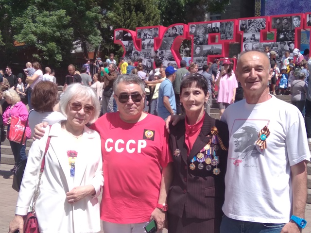 За время пребывания в парке встречаю много друзей, знакомых, коллег, как из сферы журналистики, так и спорта. Обнимаюсь и целуюсь с известной футболисткой Сауле Джарболовой и моей шефиней на Алматинском радио Людмилой Баснак. Есть, что вспомнить и о чем поговорить. Все на позитиве, поздравляют друг друга и радуются тому, что 9 Мая остается Днем Победы. Мы с другом детства по родной СДЮСШОР № 3 Кайратом Абайдульгеновым облачены в футболки с надписью СССР и изображением Ленина. Это привлекает внимание журналистки из Дании и она не только фотографирует нас, но и обстоятельно беседует и на тему 9 Мая, и про СССР и январскую трагедию в Алматы, и про войну России и Украины и даже о коррупции в Казахстане. Обязательно почитаем. Не успел я разослать в тренерские группы фото арыстановцев, как посыпались сообщения и снимки других наставников.