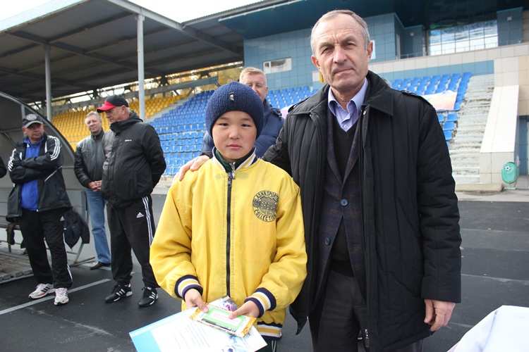 На церемонии закрытия заместитель акима Усть-Каменогорска Владимир Головатюк поблагодарил юных футболистов за азартный и интересный футбол и пожелал дальнейших успехов в спорте и учебе.
